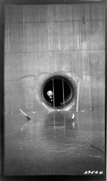 Big Creek Powerhouse #4 - Dam 7 showing fish water turbine draft tube and temporary sluice pipe.