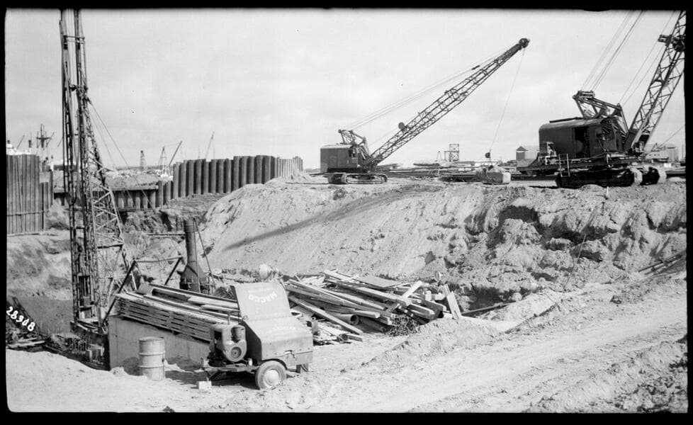 Long Beach Steam Station - Discharge Conduit - Coffer Dam at outlet of original conduit before un-watering.