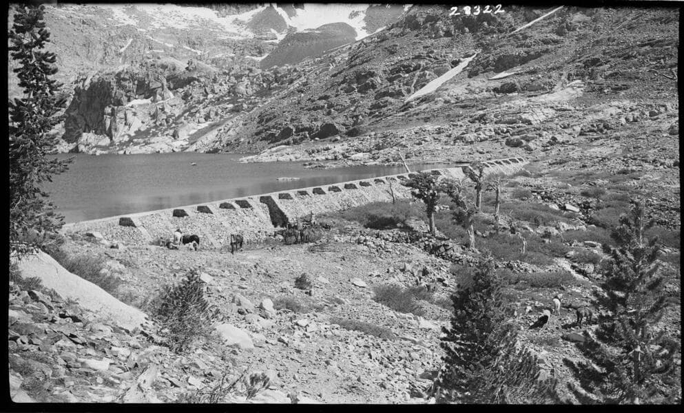 Kaweah #1 - Hydro workers visiting lower Franklin Dam, from the Kaweah #1 project on horseback.