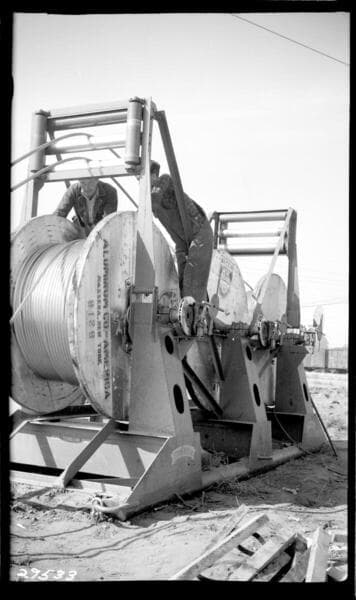 Magunden-Mesa Transmission Line - Hauling out cable and sky lines near Magunden Substation.