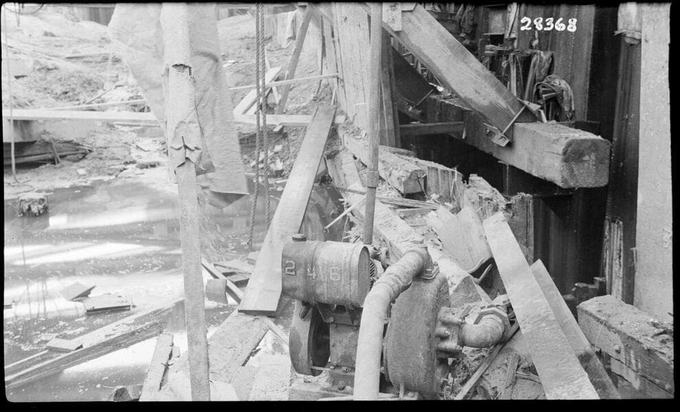 Long Beach Steam Station - Discharge Conduit - Temporary concrete wall in foreground to prevent high tides from entering excavated area.