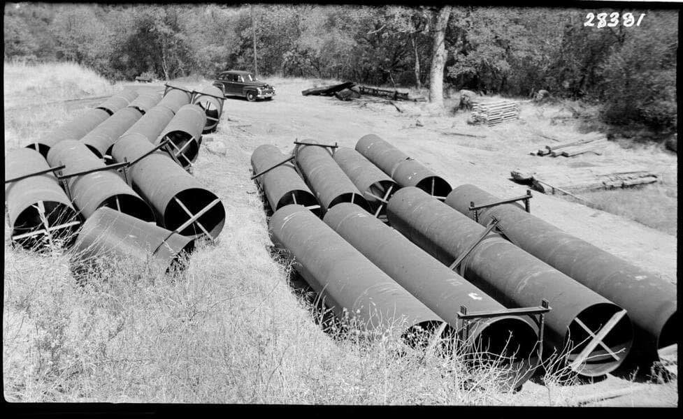 Kaweah #2 - Flume 1 - Above-ground pipe from air-vent upstream. (Sep. - Dec. 1948)