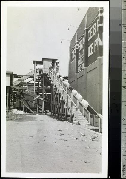 Imperial Ice & Development Co. Plant #1 with several old touring cars and model Ts parked outside.