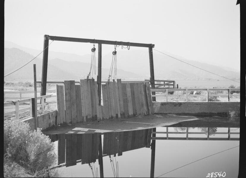 Borel Powerhouse - Borel Canal - Erskine Creek - Country Road Bridge - looking upstream. [plus additional shot: Borel Canal - Mills Case, Station N.P.5+37.43. pool of surface water 25 ft. N. (#29610) - on same photocard]