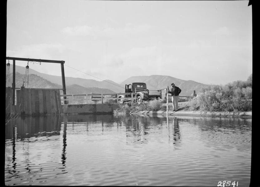 Borel Powerhouse - Borel Canal - Erskine Creek - Country Road Bridge - looking upstream. [plus additional shot: Borel Canal - Mills Case, Station N.P.5+37.43. pool of surface water 25 ft. N. (#29610) - on same photocard]
