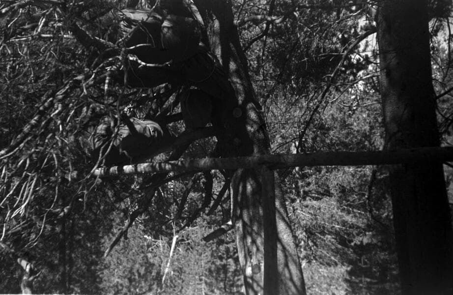 Big Creek, Fish Valley - Onion Springs - Cached equipment of gauging station and camp [in tree].