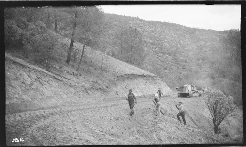 Big Creek Powerhouse #4 - Making access road hill at Block 13.