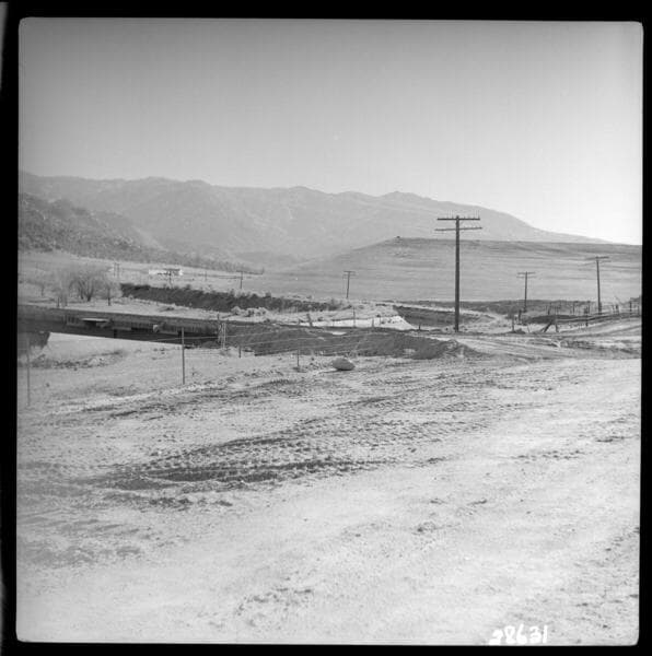 Borel Powerhouse - Borel Canal - Seepage test. View looking South from test site opposite Isabella Calif. Isabella Auxiliary Dam in background.