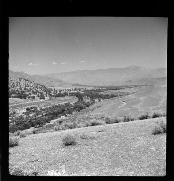 Borel Powerhouse - Isabella Dam - Army Corp. of Engineers test hole and Main Dam - Kern River looking West.