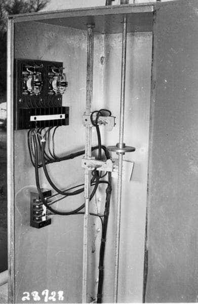 Kern River No. 1 - Borel intake power - & control panel in waste gate house.