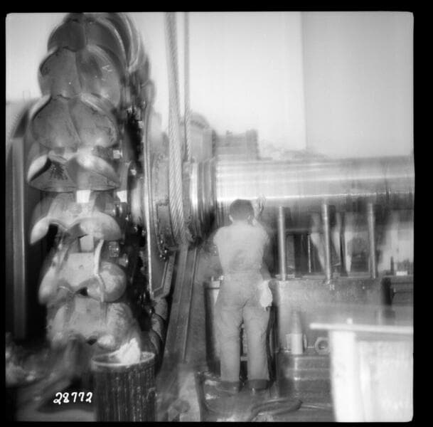 Big Creek Powerhouse 2A - Right after cutting #1 generator bucket wheel.