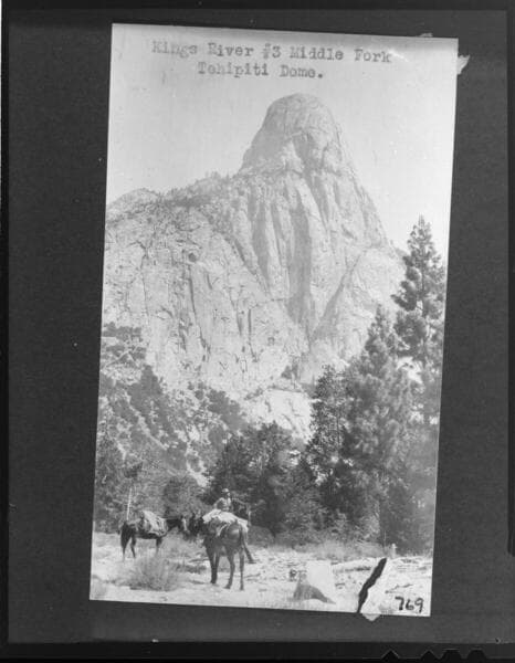 Kings River Project - A man on horseback fording the Middle Fork with a pack horse in tow at the site of Intake #3 in the Tehipiti Basin.