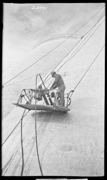 Big Creek, Florence Lake Dam - Placing test slabs, Arch #26.