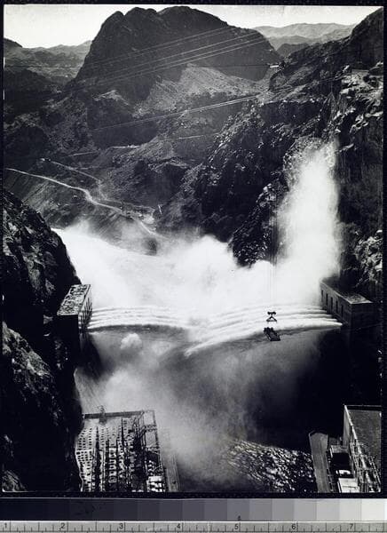 California Electric Power Corp. - Hoover Dam from downstream while dam was spilling water from the Nevada side.