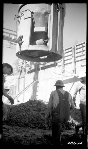 Big Creek Powerhouse #4 - Polioka Jr., Greenleaf, R. E. Davis Jr., Prof. Raymond E. Davis watching Pozzolan Concrete in Block 9.