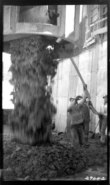 Big Creek Powerhouse #4 - Polioka Jr., Greenleaf, R. E. Davis Jr., Prof. Raymond E. Davis watching Pozzolan Concrete in Block 9.