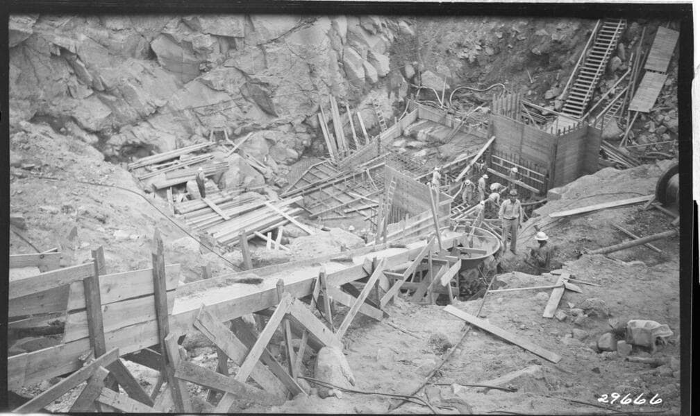 Big Creek Powerhouse #3 - Unit 4 - Forms for concrete foundation of generator.