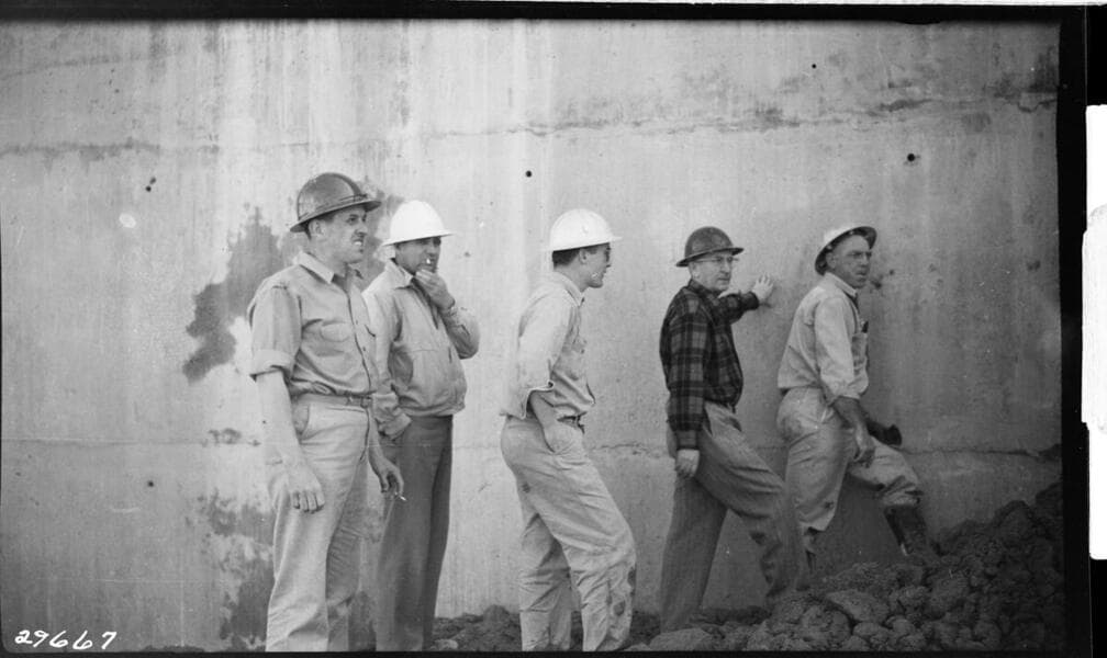 Big Creek Powerhouse #4 - Measuring slump on experimental pozzolan concrete batches.