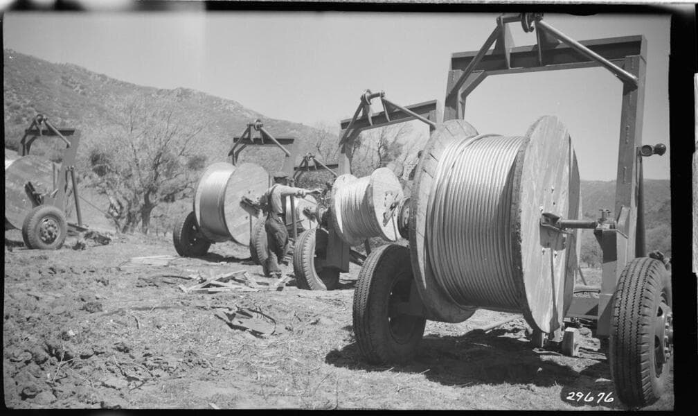 Magunden-Mesa Transmission Line - New reel dolly in use near Cummings Station.