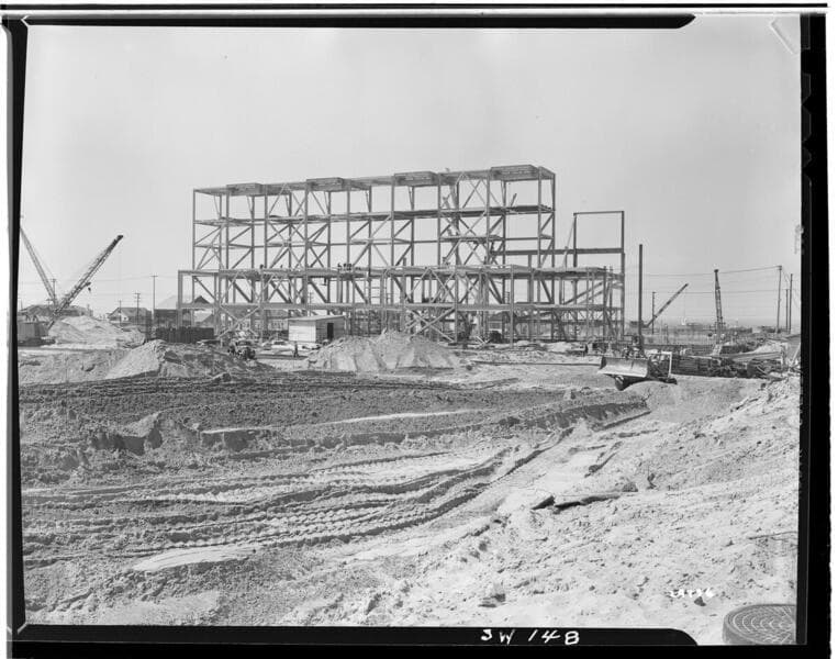 Redondo Beach Steam Station - Plant #1 - Looking southwest from yard northeast of Switchyard. #1, #2, #3 & #4 being erected.