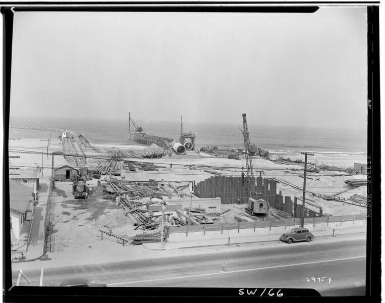Redondo Beach Steam Station - Plant #1 - Looking northwest towards screen-well site & trestle for construction of circulating water lines.