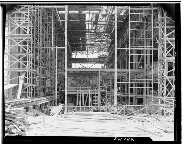 Redondo Beach Steam Station - Plant #1 - Looking north from Turbine Room floor toward Unit #1 in background, and Unit #2 support.