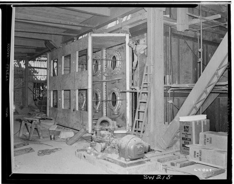 Redondo Beach Steam Station - Plant #1 - Looking northwest toward Boiler Bay, Auxiliary Bay and Turbine Room.
