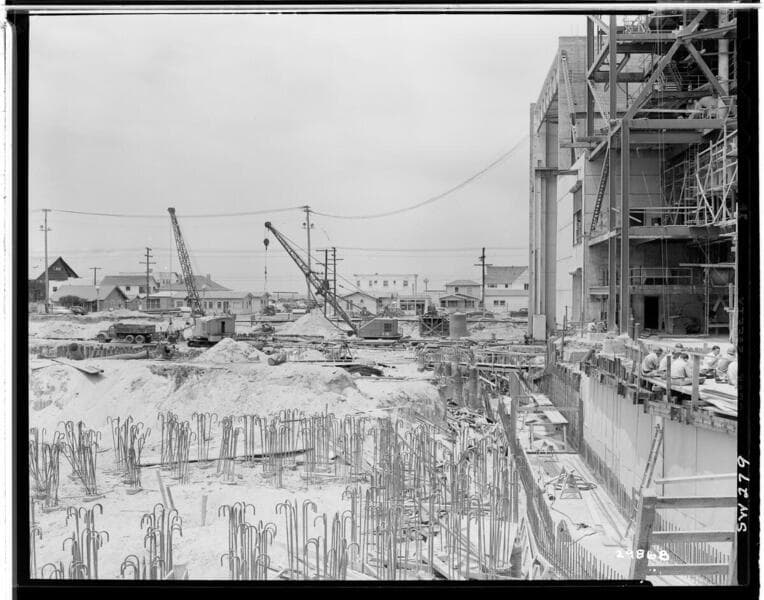 Redondo Beach Steam Station - Plant #1 - Looking east showing portion of turbine room & auxiliary bay foundation in vicinity of Unit #3.
