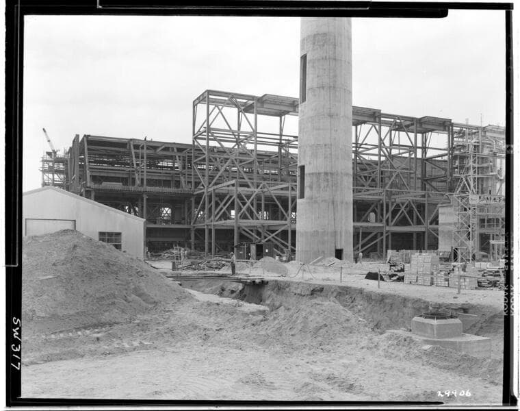 Redondo Beach Steam Station - Plant #1 - Looking northwest toward Boiler Bay, Auxiliary Bay and Turbine Room.