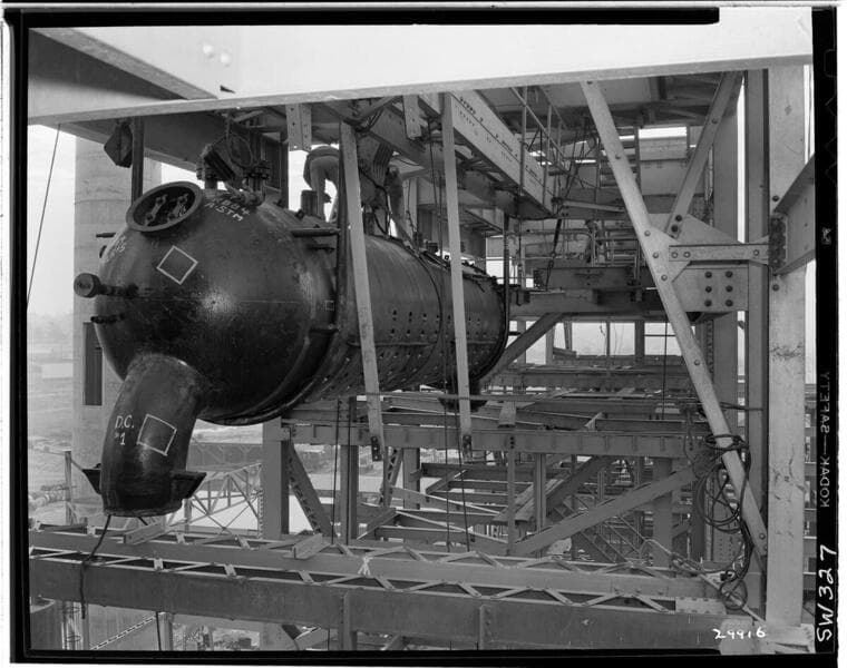 Redondo Beach Steam Station - Plant #1 - Looking southeast toward intermediate drum, downcomer and side wall tubes for #5 boiler.