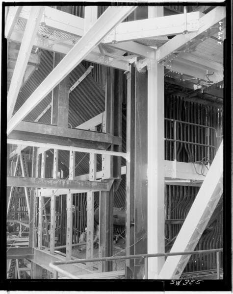 Redondo Beach Steam Station - Plant #1 - Looking southeast toward intermediate drum, downcomer and side wall tubes for #5 boiler.