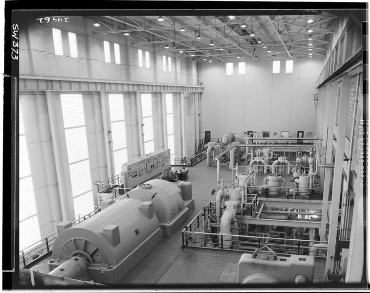 Redondo Beach Steam Station - Plant #1 - Looking northwest in Turbine Room showing General Electric Unit #4