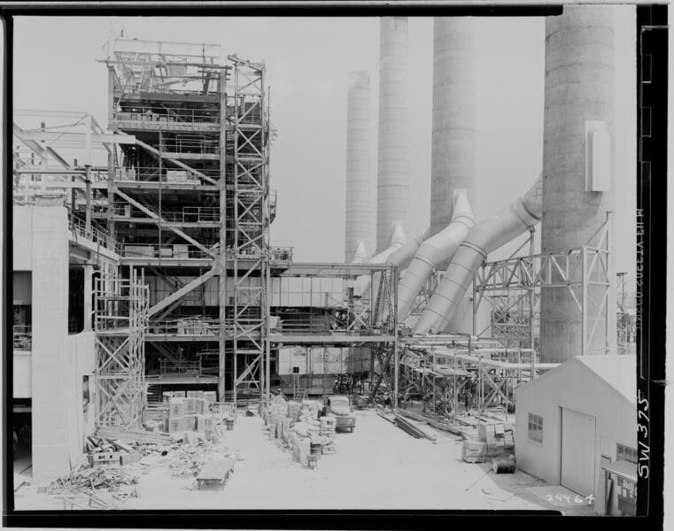 Redondo Beach Steam Station - Plant #1 - Looking northeast toward boiler bay and stack area.
