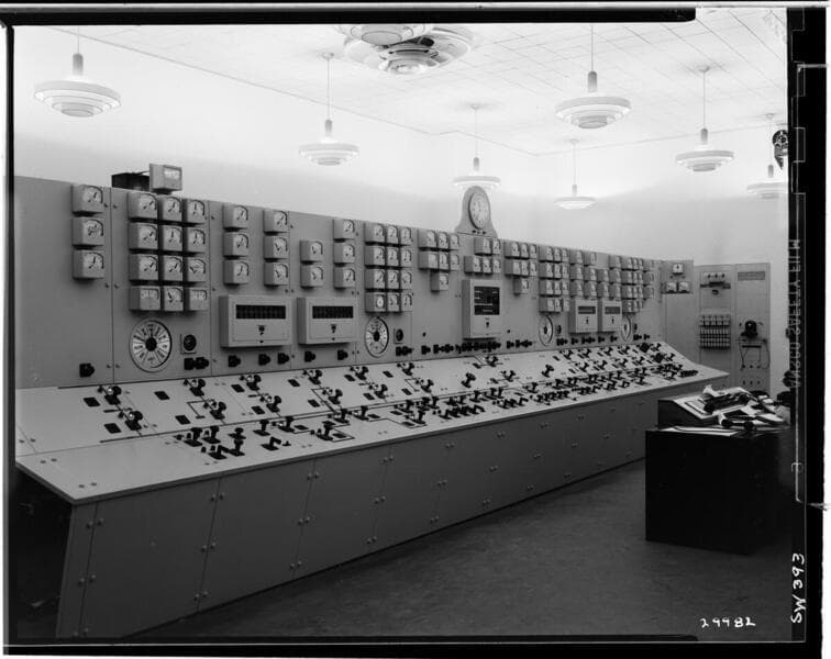 Redondo Beach Steam Station - Plant #1 - Looking southwest showing rear of control board in control room.