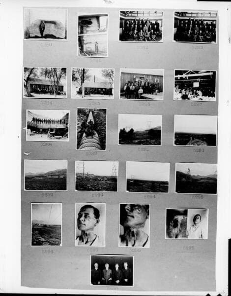 Multiple-image copy film negs - with shots of Big Creek construction, warehouses, and transmission line construction