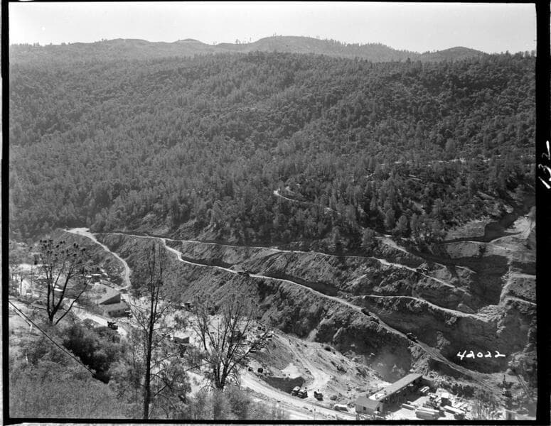 Big Creek Powerhouse #4 - Construction pictures taken by Dam & Tunnel Office. [Batch Plant overview with Dam 7 in background]