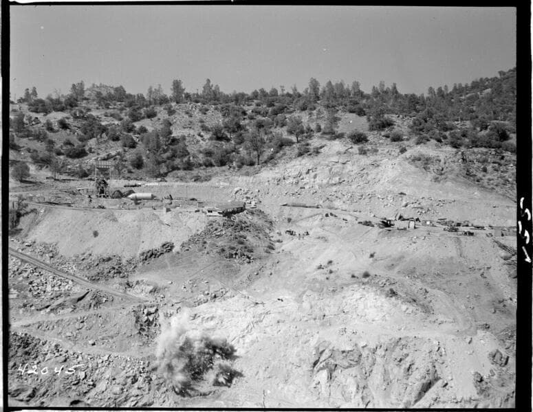 Big Creek Powerhouse #4 - Construction pictures taken by Dam & Tunnel Office. [blasting at Dam 7 abutment]