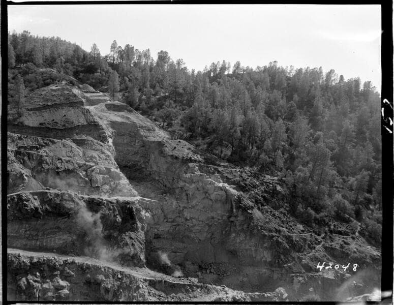 Big Creek Powerhouse #4 - Construction pictures taken by Dam & Tunnel Office. [blasting at Dam 7 abutment]