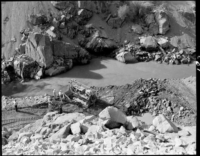 Big Creek Powerhouse #4 - Construction pictures taken by Dam & Tunnel office. [Excavation underway below cofferdam for Dam 7]