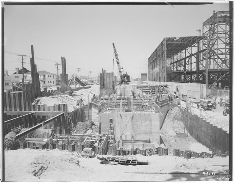 Redondo Beach Steam Station - Plants 2-5 - Screenwell, water intake & discharge tunnel construction - looking north.