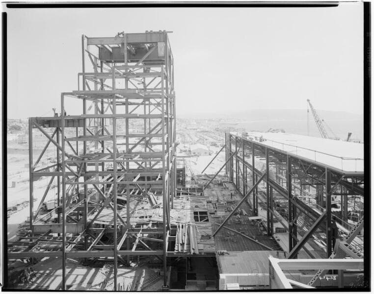 Redondo Beach Steam Station - Plants 2-5 - General view of Construction Area looking south from Plant #1 Gr. 56.0'