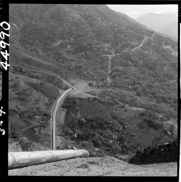 2-12 Tule Siphon - Progress photo, looking toward outlet from intake slope near 16 access road. (See sleeve S-F-02-44984)