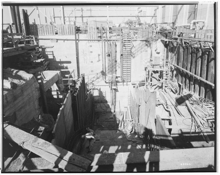Redondo Beach Steam Station - Plants 2-5 - Screenwell & circulating water intake & discharge tunnel construction - looking north.