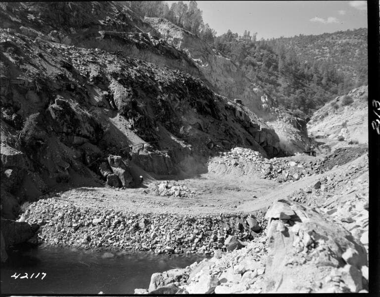Big Creek Powerhouse #4 - Construction pictures taken by Dam & Tunnel office. [Dam 7 excavation, cofferdam in background]