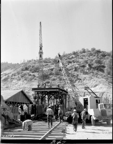 Big Creek Powerhouse #4 - Construction pictures taken by Dam & Tunnel Office. [drill rig set-up for boreing hard-rock Power Tunnels]