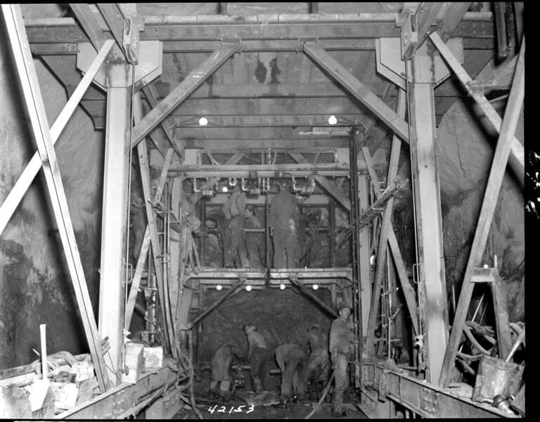 Big Creek Powerhouse #4 - Construction pictures taken by Dam & Tunnel office. [workers drilling in Tunnel #2]
