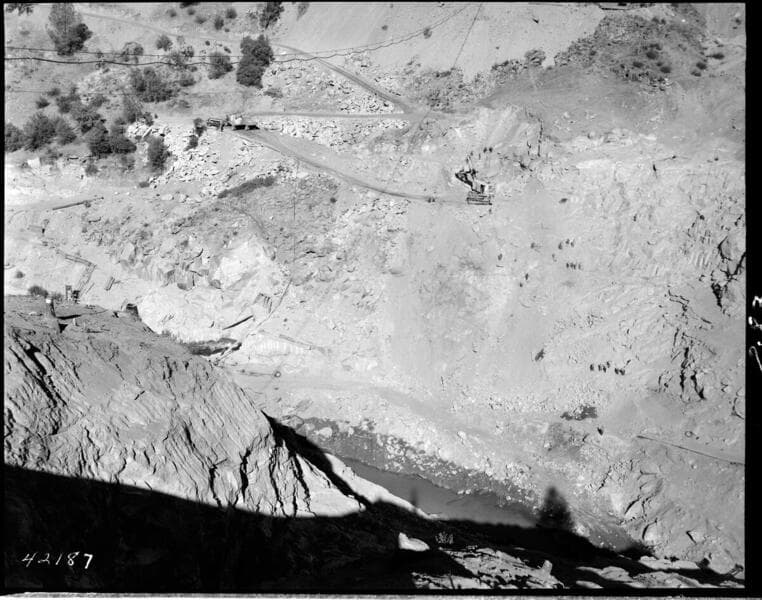 Big Creek Powerhouse #4 - Construction pictures taken by Dam & Tunnel office. [cable hoist at damsite]