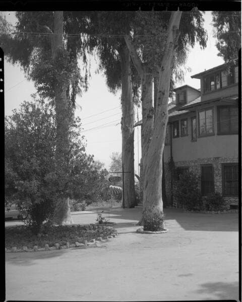 The Arrowhead Hot Springs Hotel at Arrowhead, [showing the famous arrowhead on the side of the mountain].