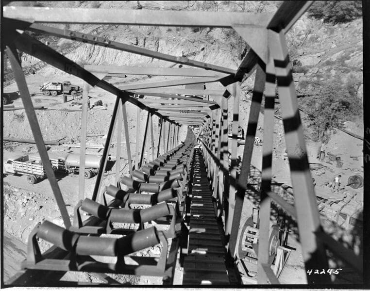 Big Creek Powerhouse #4 - Construction pictures taken by Dam & Tunnel office. [conveyor set up entering Power Tunnel portal]