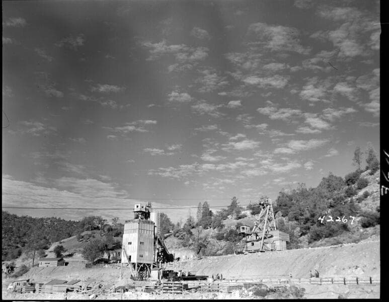 Big Creek Powerhouse #4 - Construction pictures taken by Dam & Tunnel office. [Batch Plant and cable gondola hoist for delivering concrete to Dam 7 site]